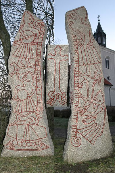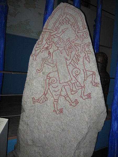 あまりにも整序された議論と捉える向きもあるでしょうか。私自身も、それほど簡単な絵が描けるとは思いませんが、ヴァイキング時代の同時代史料であるスカルド詩(王や戦士の武勲を主題とするものが多い)やルーン石碑の中に、こうした形成過程にある北欧神話の断片が記録されていることは紛れもない事実です。それらは以下の石碑に見ることができます。
