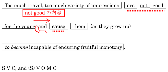 旅行をさせすぎたり、刺激を与えすぎたりするのは、子供にはよくない。そうした子供は、大きくなって、やがて実りをもたらす単調な生活に耐えられなくなってしまう。