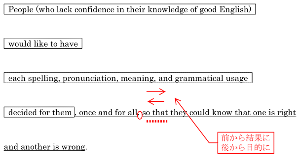 正しい英語の知識に自信が持てない人は、綴りや発音、意味、語法の逐一をきっぱりと決めてもらえば、どれが正しくどれが間違いかを知ることができるのにと思う。明らかにいくつかの選択肢がある場合は不安になるのである。慣用のすべての問題を解決できる一定の基準があってほしいという気持ちもあって、そういう人はこの種の基準が現実に存在して働いているものと思いこむようになり、そうした規則の根拠を調べてもみずにそれらを念仏のように唱えるのである。