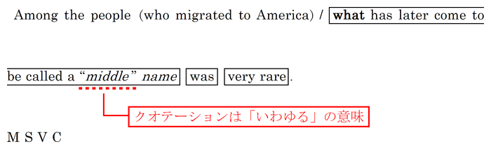 →「ミドルネームは稀だった」→「ミドルネームはめったになかった」→「ミドルネームを持つ人はめったにいなかった」が翻訳の思考過程。