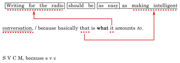 「(なぜなら基本的に)知的会話を交わすことが、ラジオのための書き物が達しようとするところのものだからである」が直訳。
